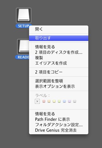 SETUPとREADERの2つのドライブを取り出します(イジェクトします)。