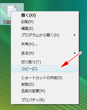 コピーしたいファイルのアイコン上で右ボタンをクリックします。