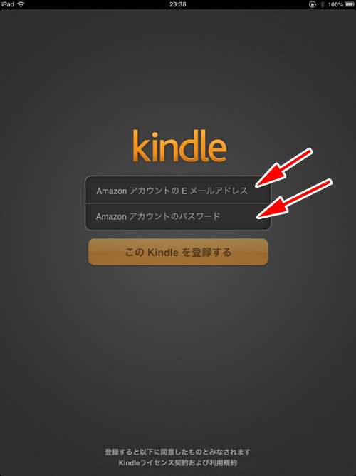 アカウントとパスワードを入力したら「このKindleを登録する」ボタンをタッチします。
