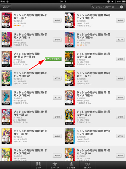 すると該当する本がリストアップされます。金額が書かれたボタンをタッチします。
