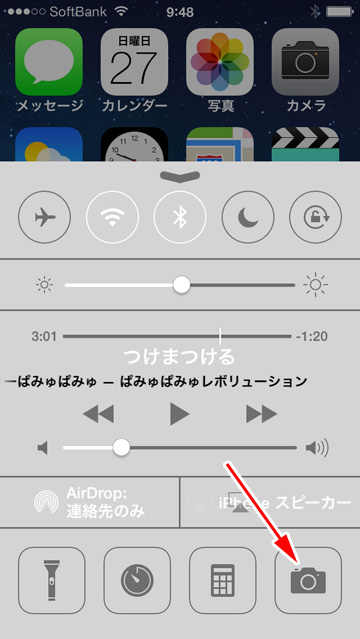 正方形の写真を撮影したい場合は画面下の「スクエア」を選択します。スクエアを選択するには、ビデオ〜写真〜スクエアの文字が表示されている部分で右から左にスワイプ(指でタッチしたまま右から左に動かした後、指を離す)します。