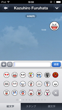 絵文字の場合はタッチしただけでは送信されません。「送信」ボタンをタッチすると送信されます。