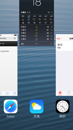 起動中のアプリケーションを終了するにはホームボタンを素早く2回押します。