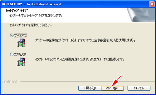 特にカスタマイズしてインストールする場合以外は「すべて」を選択して「次へ」ボタンをクリックします。